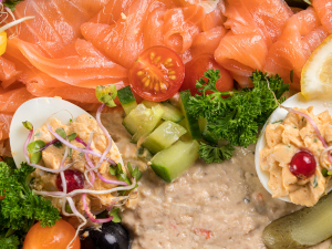 Zalmsalade mooi opgemaakt met o.a.: